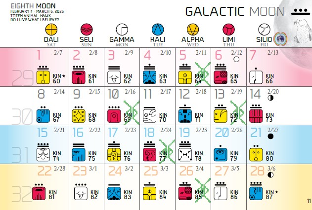 В этот день начинается новый 2080-дневный цикл пси банка, который завершится 2 июля 2029 года. 2080 = 260 х 8. Это плюс один 23-дневный биотелепатический цикл завершит 9-летнюю карту видения в День Вне Времени 2029: Синюю Планетарную Ночь.